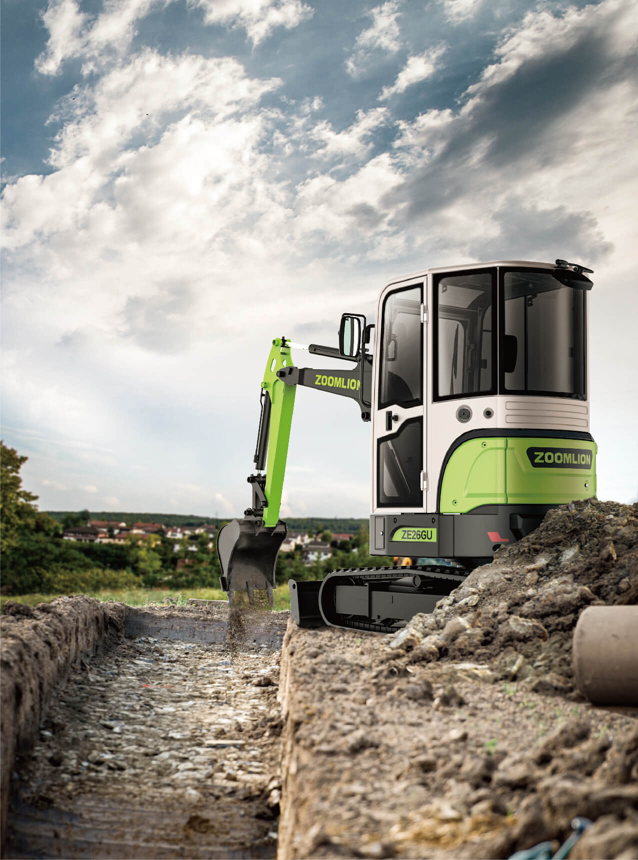 Zoomlion ZE27GU(Cab) is a compact excavator with no tail turning. It is suitable for municipal engineering, landscaping, rural construction, agricultural construction, mine construction, etc., especially suitable for narrow construction sites with limited space, it is the best choice for machines to replace labor; its weight and size design are in line with European transportation habits, only a private car and a small trailer can be easily Realize the transition of the machine.